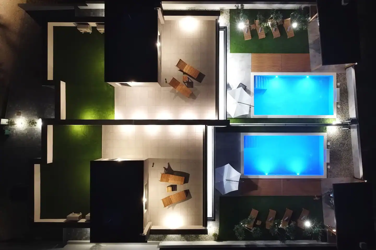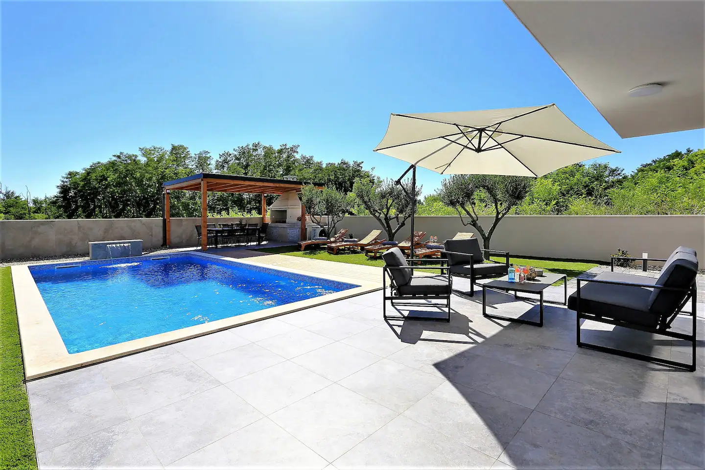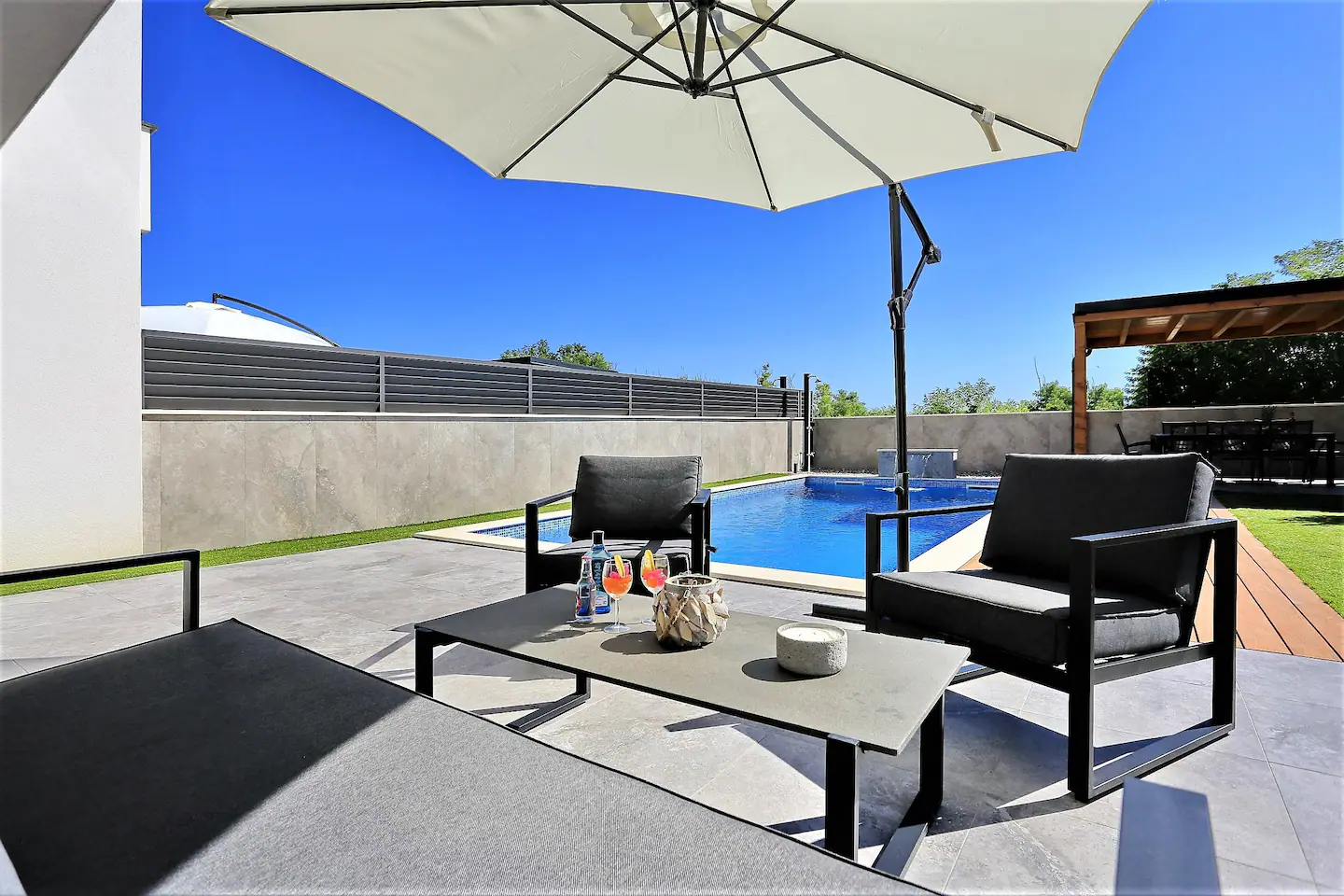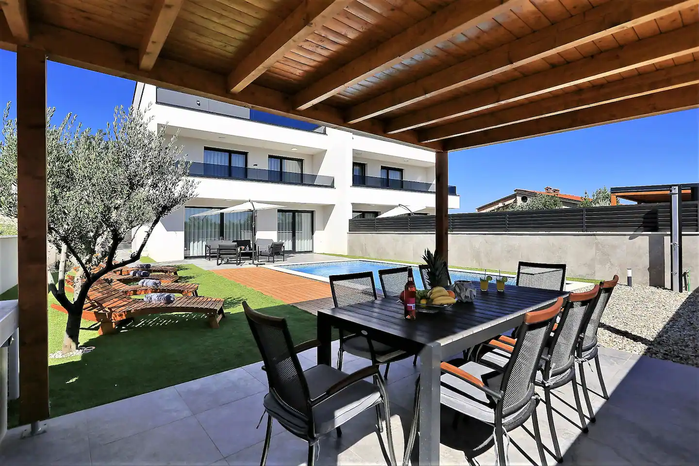 Vila moderne arhitekture prostire se na 230 m² i dio je dvojne kuće s Villom Lela. Na krovu se nalazi velika terasa za sunčanje i opuštanje s prekrasnim pogledom. U dvorištu se nalazi grijani bazen (8×4 m) obložen staklenim mozaikom, vanjski tuš, lounge zona, pergola s roštiljem na drva i brikete, sudoperom i stolom za 10 osoba te ležaljke za sunčanje. U neposrednoj blizini (150–300 m) dostupni su market, pekara, štand s voćem i povrćem, hotelski restoran te beach bar s hranom i pićem.